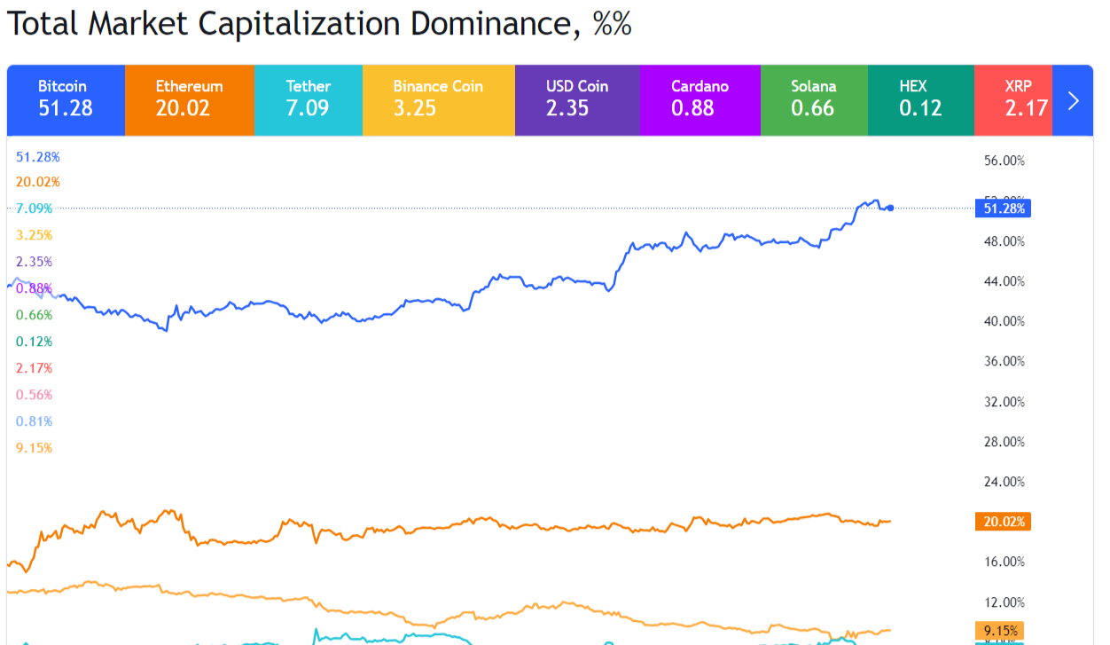 Secondo CoinGecko, la capitalizzazione di mercato globale delle criptovalute è attualmente di $ 1,26 trilioni, una variazione dello 0,7% nelle ultime 24 ore e del 32,97% nell'ultimo anno. L'attuale capitalizzazione di mercato di Bitcoin (BTC) è di $ 603 miliardi, che rappresenta una quota di mercato del 47,9%.