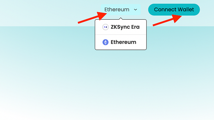 Passaggio 2: scegli la rete (Ethereum Mainnet o zkSync Era) e collega il tuo portafoglio.